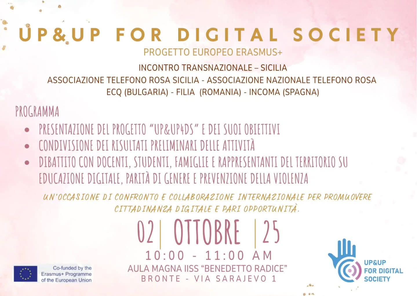 Nell’ambito del meeting transnazionale del progetto europeo UP&UP4DS – Up&Up for Digital Society, si terrà un incontro pubblico aperto alla cittadinanza.