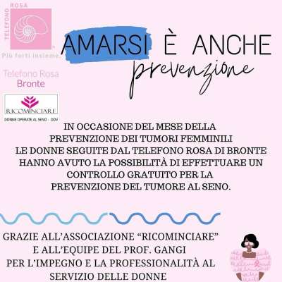 4 Novembre 2024Volersi bene vuol dire anche prendersi cura di sé. Nel mese dedicato alla prevenzione dei tumori femminili, le donne seguite dal Telefono Rosa di Bronte hanno potuto fare controlli gratuiti per il tumore al seno. Un grazie enorme all’associazione Ricominciare e all’équipe del Prof. Gangi per la loro disponibilità, competenza e cuore, sempre al fianco della salute delle donne.